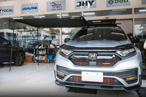 HONDA CRV5.5 的車頂具備固定點,並配有預留孔,因此採用 YAKIMA 推出的SkyLine車頂架,並選用JetStream突出式橫桿。搭配的車載裝備,車頂籃LoadWarrior以及車邊帳OverNOut S新款(200x250cm)。